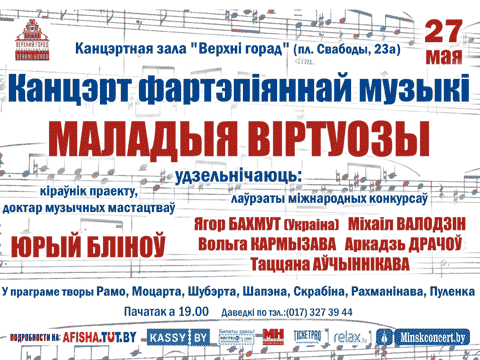 В этом году на одной сцене с лучшими пианистами Беларуси, а это Михаил Володин, Аркадий Драчев, Ольга Кармызова, Татьяна Овчинникова выступал и Егор Бахмут, где в программе наше дарование было заявлено не иначе как – юный вундеркинд из Украины.